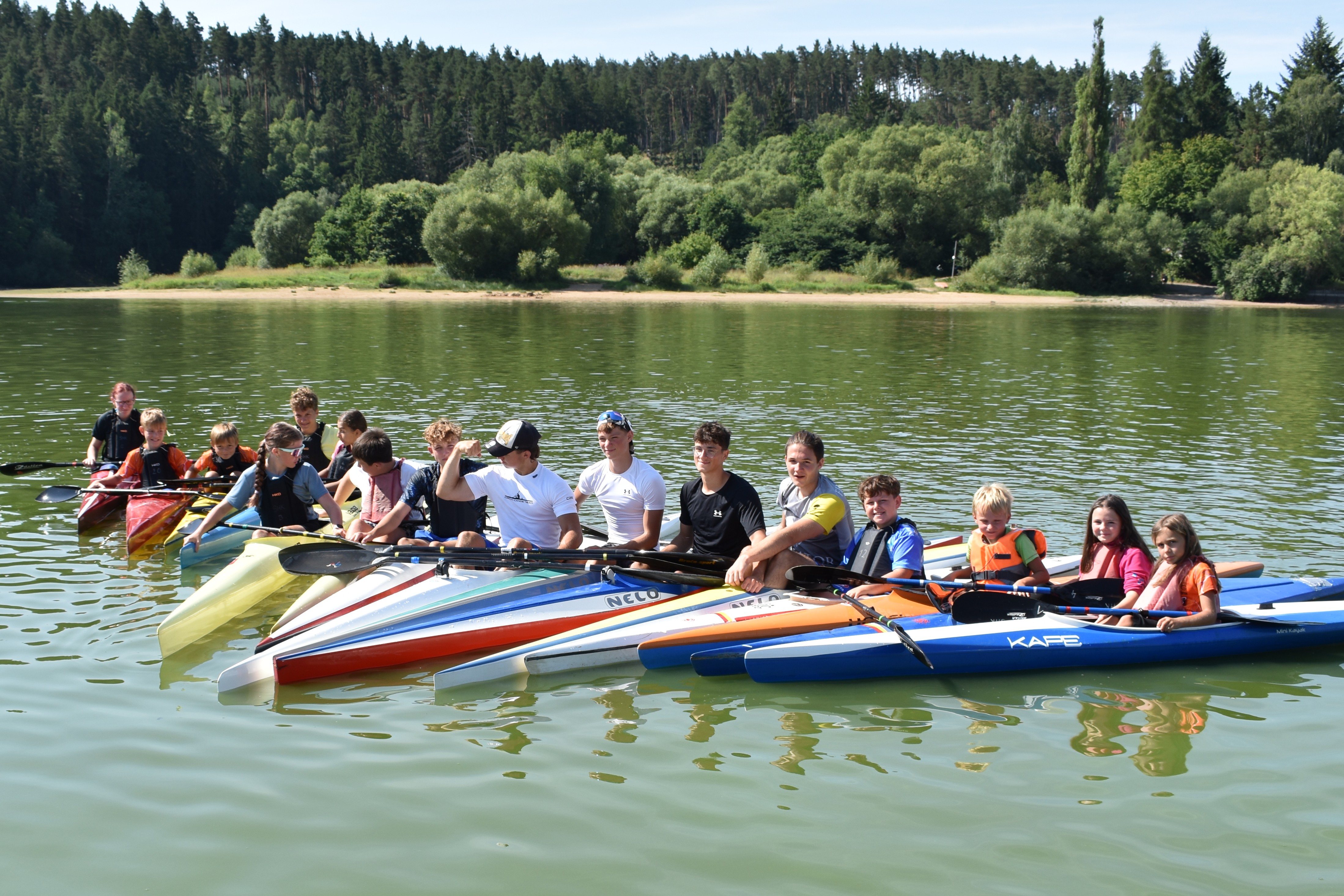 Část našich benjamínků (kategorie B a C) tedy mohla po celou dobu trénovat společně se svými vrstevníky z Chomutova, my jsme zase do svých tréniínkových skupin zařadili sportovce z KVS Žamberk a na závěr soustředění kajakářku z KKK Kadaň.